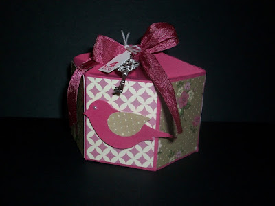 Isn't it the cutest little thing?!? I just love it! I used the Springtime Vintage paper from the Occasions Mini to decorate it along with some Rose Red Seam Binding Ribbon and a Key Trinket and the 2 step Bird Punch. Wouldn't this make a magnificent Mother's Day or Graduation gift?